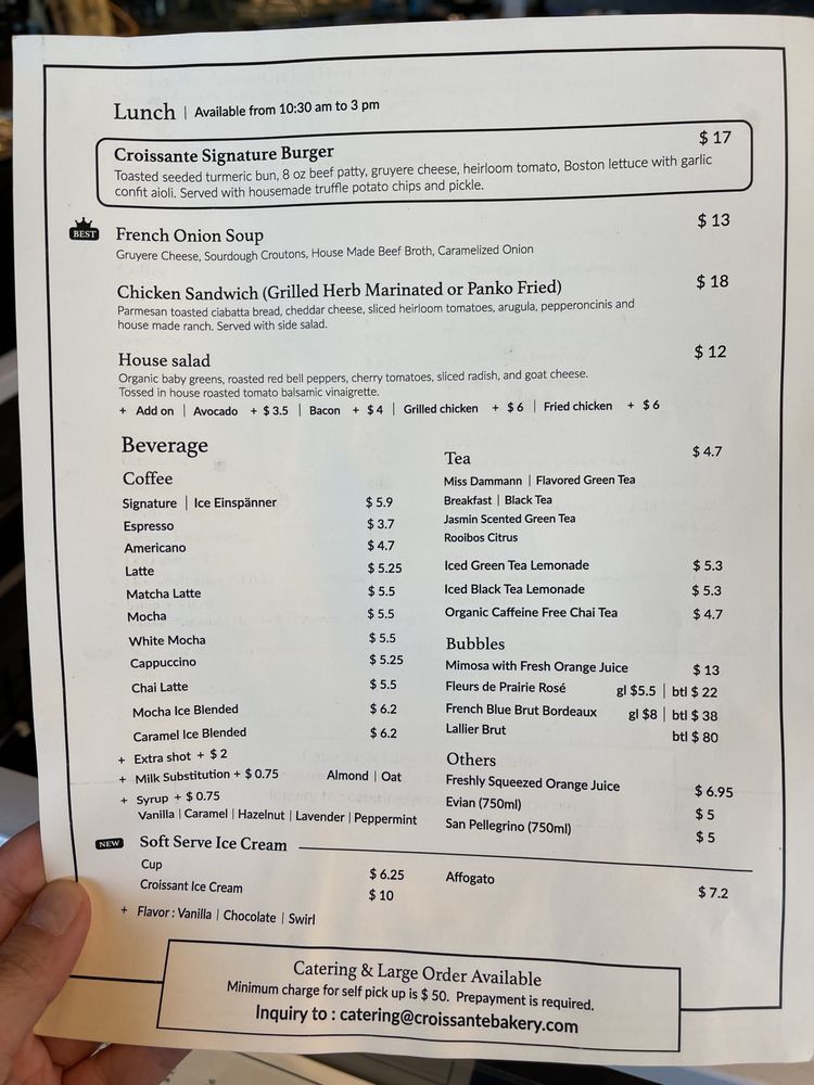Croissante, a bakery nestled in Santa Clara, CA, offers a delightful array of French-inspired pastries and desserts. With a focus on quality and artisanal craftsmanship, their menu features savory and sweet treats that promise to tantalize your taste buds. Customer reviews rave about the buttery, flakey croissants that are simply heavenly. Standout items like the almond croissant and the Kouigann Amman are highly recommended for their exceptional flavors and textures. While some pastries may miss the mark, the overall selection is diverse and caters to a range of preferences. Despite the slightly higher price point, the quality of the baked goods is reflected in every bite. Croissante's charming ambiance, efficient service, and tempting display of pastries make it a must-visit for pastry enthusiasts seeking a taste of France in the Bay Area. Don't miss out on this food instagrammer's haven that promises both aesthetic appeal and delectable treats.